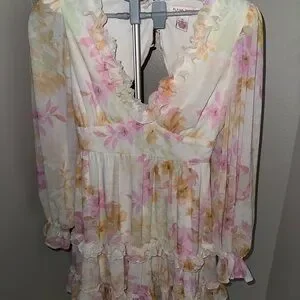 In a pastel floral print with ruffles at the trim, this mini dress is an effortlessly elegant addition to any chic closet. This style was designed by & has a Flying Tomato label. Flying Tomato strives to create collections centered on quality construction and affordability for all shapes, sizes, and lifestyles.
