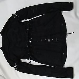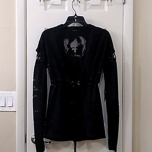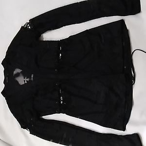 SALVAGE RARE Mesh Graphic Front Tie Cardigan. M