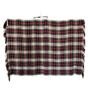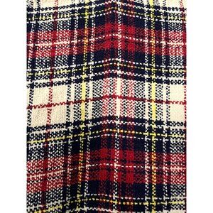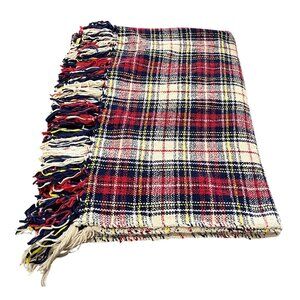 Ralph Lauren Plaid Tartan Throw Blanket Woven Fringe Edge Red White Blue Yellow