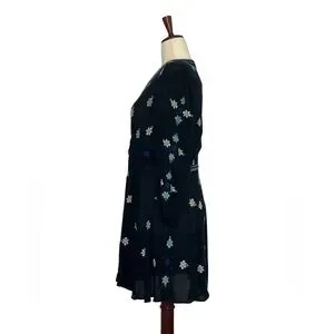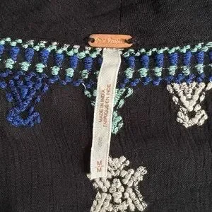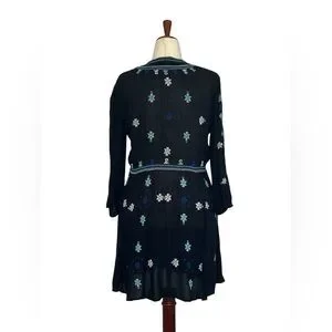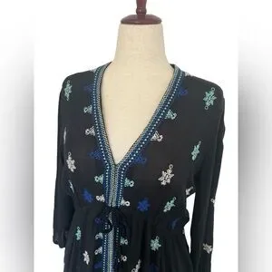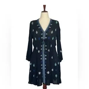 Free People Walking On A Dream Embroidered Mini Dress Black Boho Tunic Size M