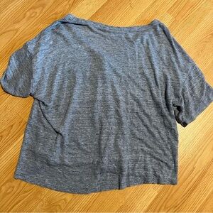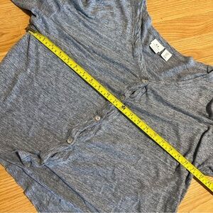 Halston 100% linen gray blue slub cotton feel button short sleeve baggy shirt L. Excellent condition. One loose thread, pictured. No other flaws or holes.