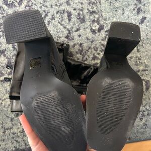 Glossy black heeled boots with a sleek design. Perfect for elevating any outfit.