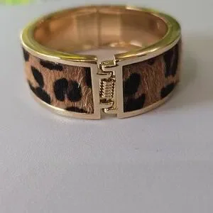 Avon Leopard Faux Fur Gold Tone Hinged Bangle Bracelet NIB