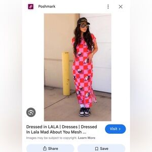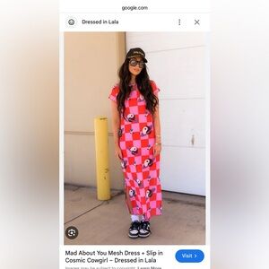 ISO (in search of) NOT for sale!! Do NOT buy!!: Mad About You Mesh Dress + Slip in Cosmic Cowgirl. Vibrant pink checkered maxi dress with unique patterns. Need in a size large. If anyone can let me know if they or someone else is selling, I’d be so grateful!!