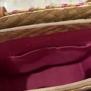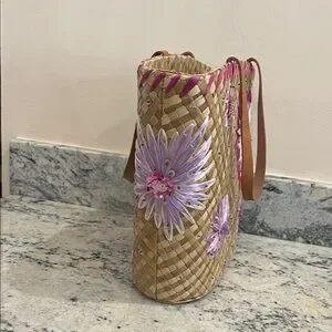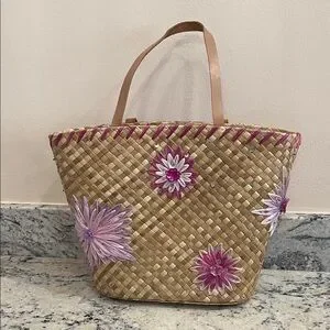 Floral Woven Tote Bag - Tan and Pink