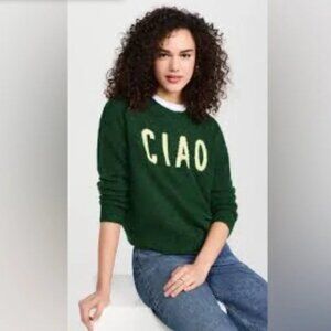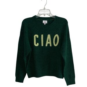 Sundry Ciao Crewneck Sweater Green Intarsia Knit Word Pullover Size Medium