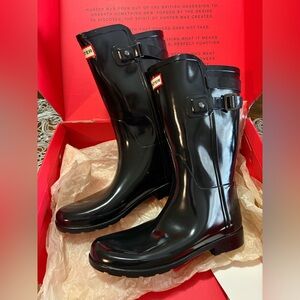 New in the box ! Glossy black boots with adjustable buckle. They are the 12 inch in my opinion the most comfortable ! I’ll throw in a new pair of the boot socks with the sweater top in a cream ♥️