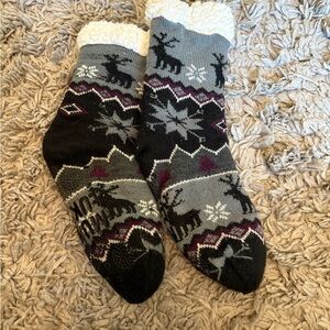 Cozy Black and Gray Socks with Reindeer Pattern muk luk