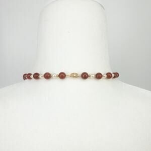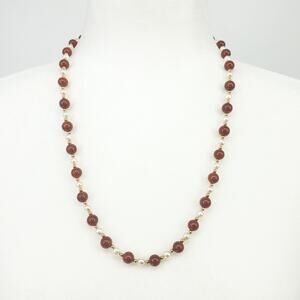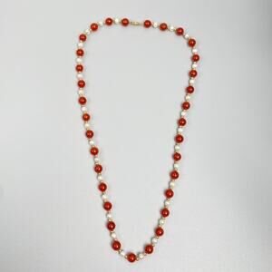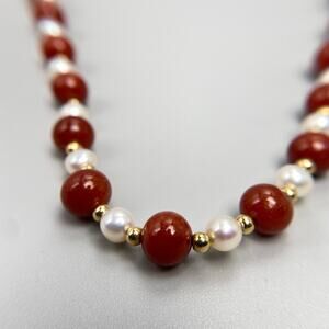 14K Gold Red Jade & Freshwater Pearl 24" Necklace ❤️
