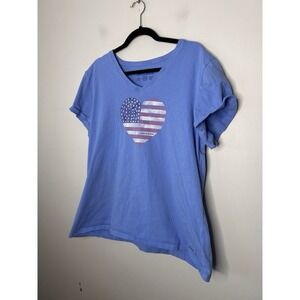 Life Is Good Crusher Lite V-Neck T-Shirt Love Heart American Flag Women's XXL