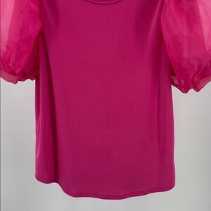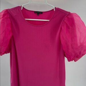 Adrianna Papell Fuchsia short sleeve Puff Sleeve Blouse M office casual colorful