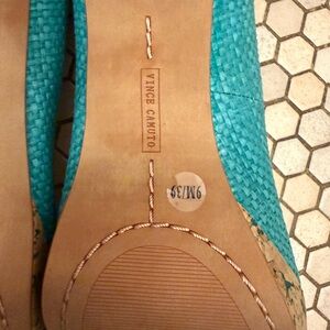 Vince Camuto Teal Textured Peep-Toe Heels