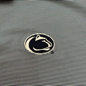 The Horn Legend Penn State Nittany Lions Gray Navy Shirt in size M is an officially licensed product featuring the iconic team colors of gray and navy. This shirt proudly displays the Penn State Nittany Lions team logo, making it a stylish and comfortable choice for fans of the team. Made by a reputable brand, this shirt is perfect for showing support for the team in a casual and fashionable way.