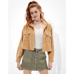 AE American Eagle Hooded Cropped Corduroy Button-Up Shirt Womens Size XS