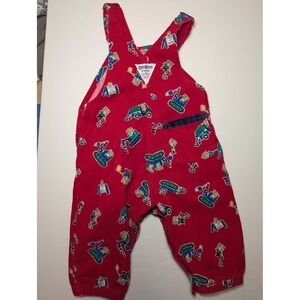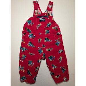 VTG OshKosh B'Gosh Red Corduroy Vestbak Mice at Work Overalls 12M Made in USA
