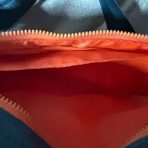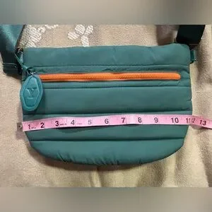 Stylish green crossbody bag featuring a vibrant orange accent. Orange interior. Unused. Perfect for everyday use with a sleek design.