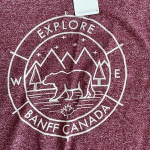 Showcase your adventurous spirit with this maroon Explore Banff Canada tee. Perfect for casual outings, this short sleeve top combines comfort and style. Tub 6
