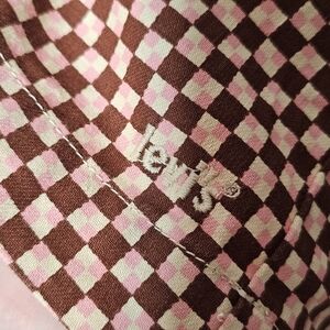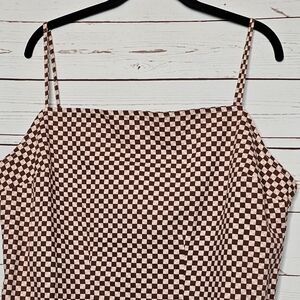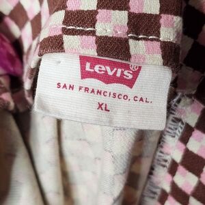 Levi's Danny Dress. Color: Cherry Mahogony (Brown/Pink) Checkered Geo Pattern. Straight Neckline. Adjustable Spaghetti Straps. Side Seam Pockets. Hidden Back Zipper Closure. Slim Fit. NWT. Size X-Large. Flat Lay Measurements: Chest 20" Hips 24" Length 35"