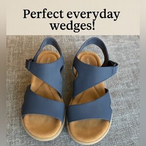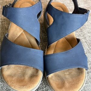 Easy Spirit Navy Blue Strappy Wedge Sandals Size 6.5M Comfort Shoes