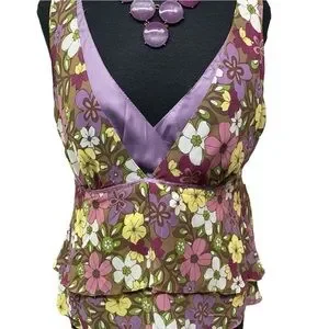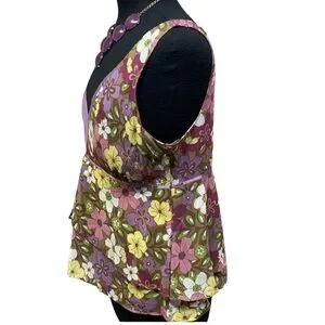Beautiful multi colored floral top with layered hem