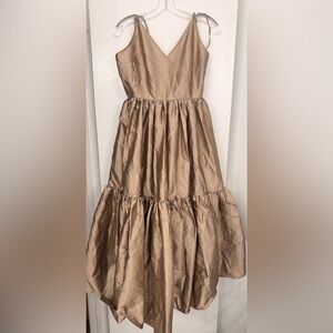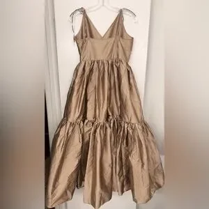 Bloni x Anthropologie Champagne Bronze Tiered V Neck Maxi Dress Size Small.