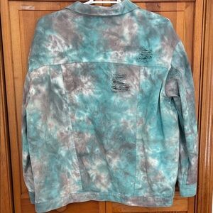 Oddy Teal Gray Tie‑Dye Distressed Denim Jacket Plus Size 2X/3X NWT