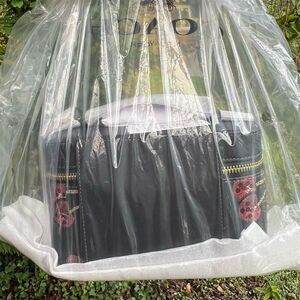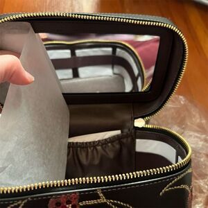Keywords: Coach, organizer, women, black, gold-tone hardware, signature canvas, cherry print, fashionable, secure zip closure, new with tags.