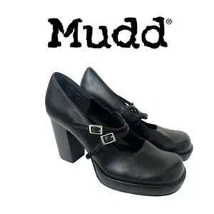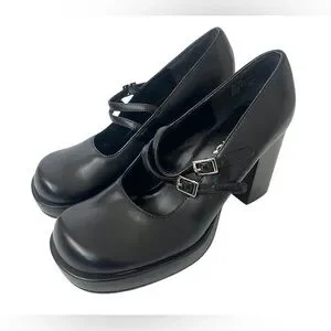 Y2K Mudd Women's Black Mary Jane Platform Heels - Size 7.5