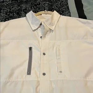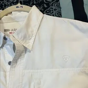 Stylish Ariat button down shirt. Features a sleek design with a chest pocket. Perfect for casual wear.