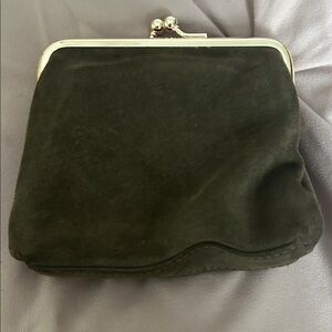 Chic suede clutch with a classic frame. Features a polished metal clasp. Ideal for stylish outings.