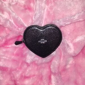 Stylish heart-shaped coin pouch by Coach. Glittery black finish. Ideal for small essentials.