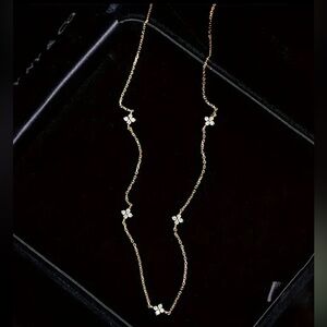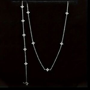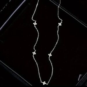 925 Sterling Silver Exquisite Four Leaf Clover Zircon Necklace. This piece is so dainty and feminine. It’s ultra lightweight and comfortable to wear! The necklace measures 17.7”. Available in gold or silver