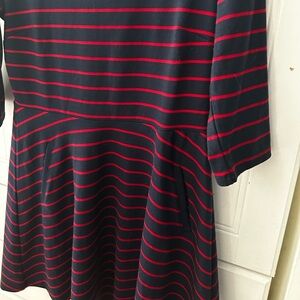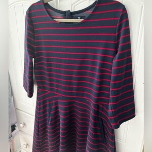 GAP NWOT Navy and Red Striped Dress with 3/4 Sleeves A Line Fit, Flowing Skirt