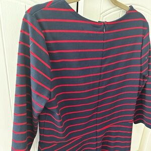 Navy & Red Dress with red stripes. Round neckline. Comfortable fit. Super Chic and Versatile