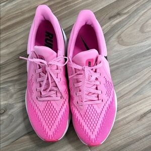 Sleek pink design with black accents. Lightweight and breathable. Ideal for running and everyday wear. Only worn a few times.