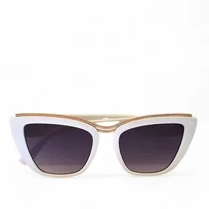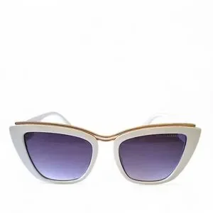 Make a bold statement with these ultra-glam Dolce & Gabbana DG22038 cat-eye sunglasses. Designed with glossy white acetate frames, a gorgeous metallic gold-tone brow accent, and gradient lenses that scream luxury. The chunky temples feature the iconic DG logo for that extra designer flair.