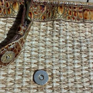 Brahmin Tisbury Collection Crossbody Purse Woven Straw Croc-Embossed Leather