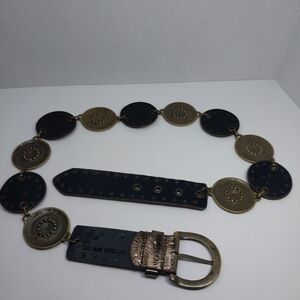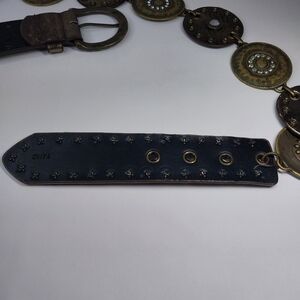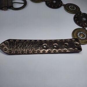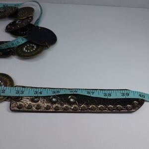 Vtg Style Boho Western Concho Belt Metallic Discs Rhinestone Studded 34-36 inch