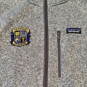 Patagonia Men's Better Sweater Fleece Jacket - Grey. Comfortable and versatile full-zip jacket. Features embroidered Newport Academy logo and 3 zippered pockets. Cozy fleece inner. Excellent preowned condition.