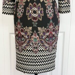 NWT DM Collection Black Multi Print Jeraldeen Jersey Shirt Dress 8
