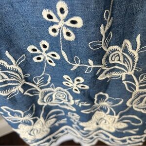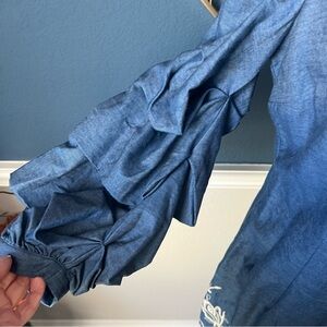NWOT Denim Embroidered Dress with Ruffled Sleeves