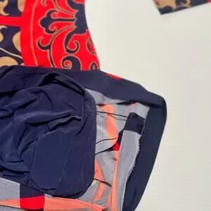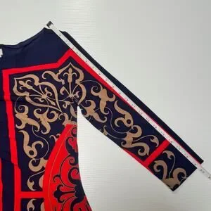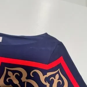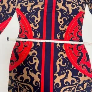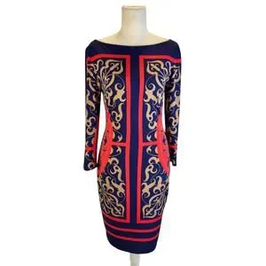 Cache Bodycon Sheath Dress Baroque Navy Red Women’s Medium Boat Neck Geometric Y2K