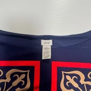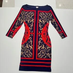 Cache Bodycon Sheath Dress Baroque Navy Red Women’s Medium Boat Neck Geometric