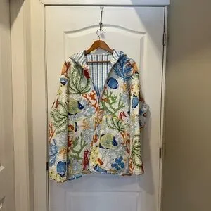 Dive into style with this vibrant quilted jacket featuring a playful aquatic design. Perfect for adding a splash of color to your wardrobe.
