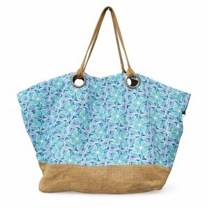 Peter Millar Turquoise Jute Tote Bag Large Coastal Beach Resort Geometric