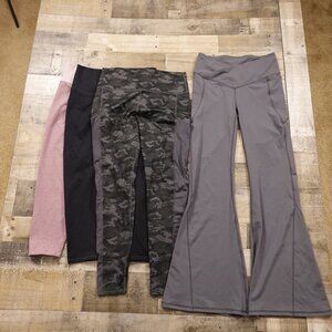 This bundle is for a four pack of leggings by fabletics including one powerhold and one flare pureluxe yoga legging; the other two are unidentified but are by fabletics