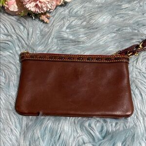 Dooney & Burke Florentine Chestnut Leather Wristlet. This is in good used condition with some wear
