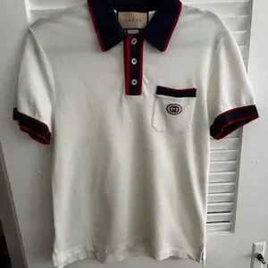 ✨ Gucci Classic Polo Shirt – White w/ Navy & Red Trim ✨