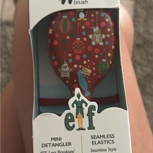 The Wet Brush Mini Detangler in a festive red design is perfect for smooth, tangle-free hair. Its seamless elastics ensure gentle styling without breakage.