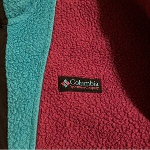 In great used condition. No rips, stains or holes. It is really really soft. Oversized. 90s colorway. The colorway is vintage but the fleece jacket is not. Included a model photo with a different color combination.